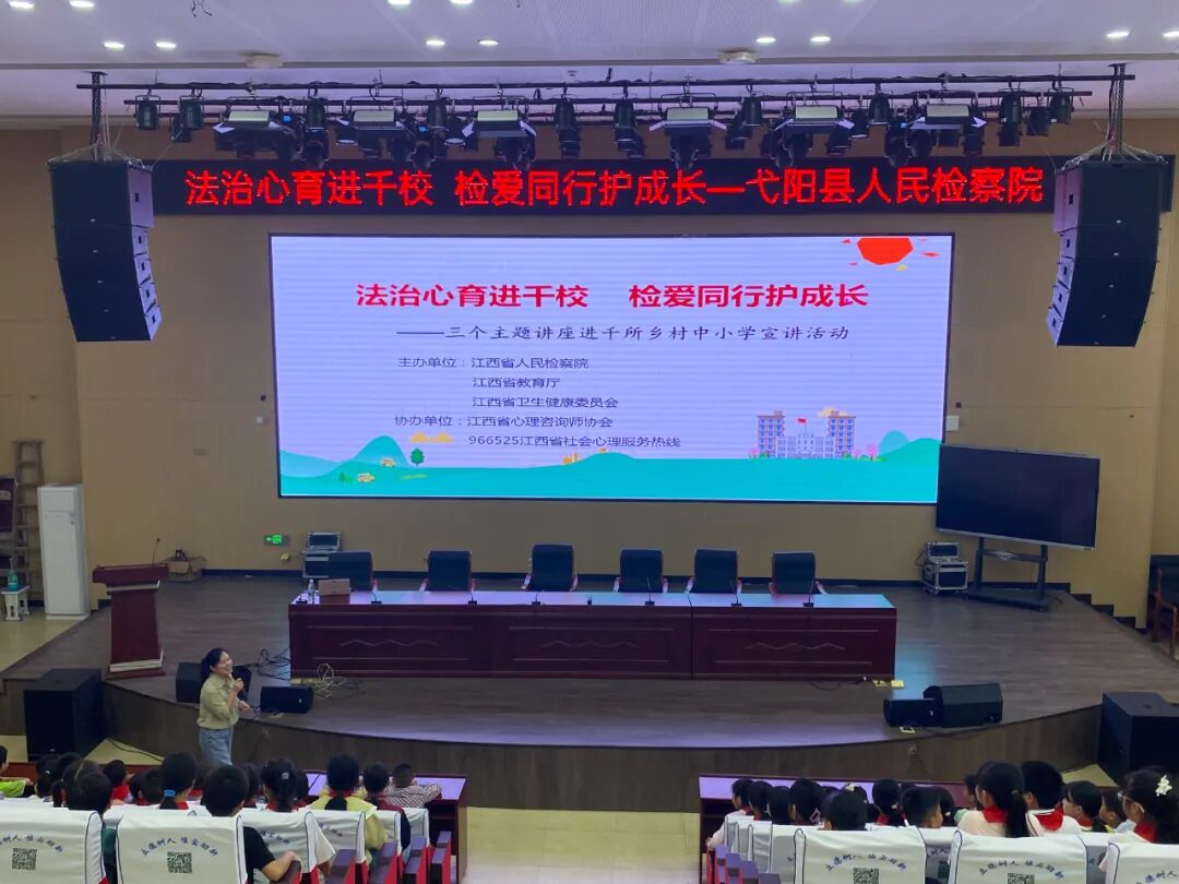 近日,弋阳县人民检察院检察干警联合心理咨询师协会,以“法治副校长+心理咨询师志愿者”的形式走进弋阳县高新小学,开展“法治心育进千校,检爱同行护成长”的法治宣讲活动。以“珍爱生命,健康成长”为主题,进行教育宣讲。