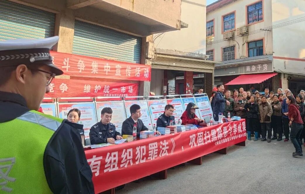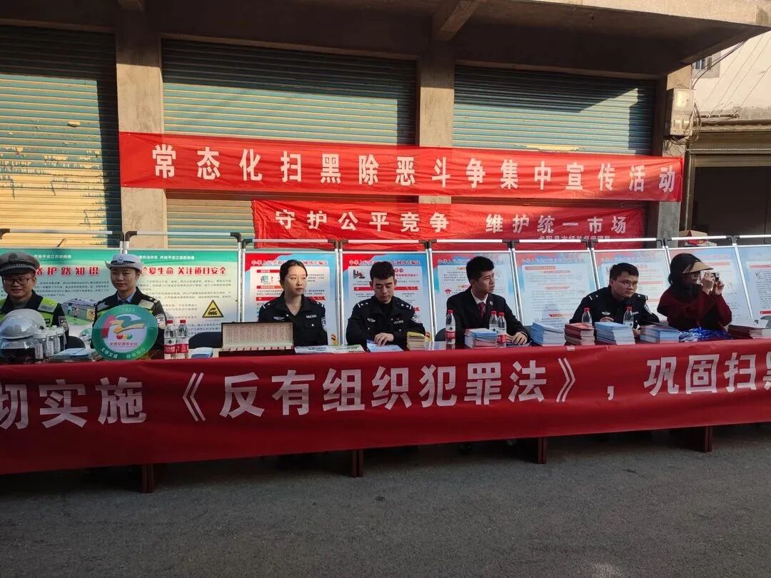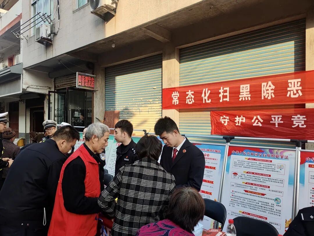 11月24日,为深入推进常态化扫黑除恶专项斗争,全面建设法治弋阳,维护社会和谐稳定,保障人民安居乐业,弋阳县人民检察院联合县政法委、县法院、县公安、县市场监督管理局深入叠山镇,在集贸市场、居民社区等场所,开展常态化扫黑除恶斗争集中宣传活动。