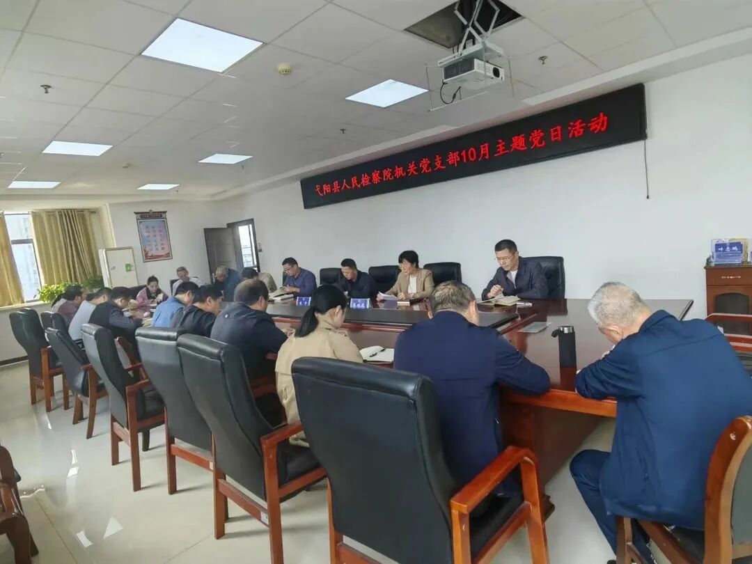 10月13日,弋阳县人民检察院机关党支部举行10月主题党日活动。院机关党支部书记黄卫清主持会议,院党组书记、检察长蔡明筱以普通党员身份参加。