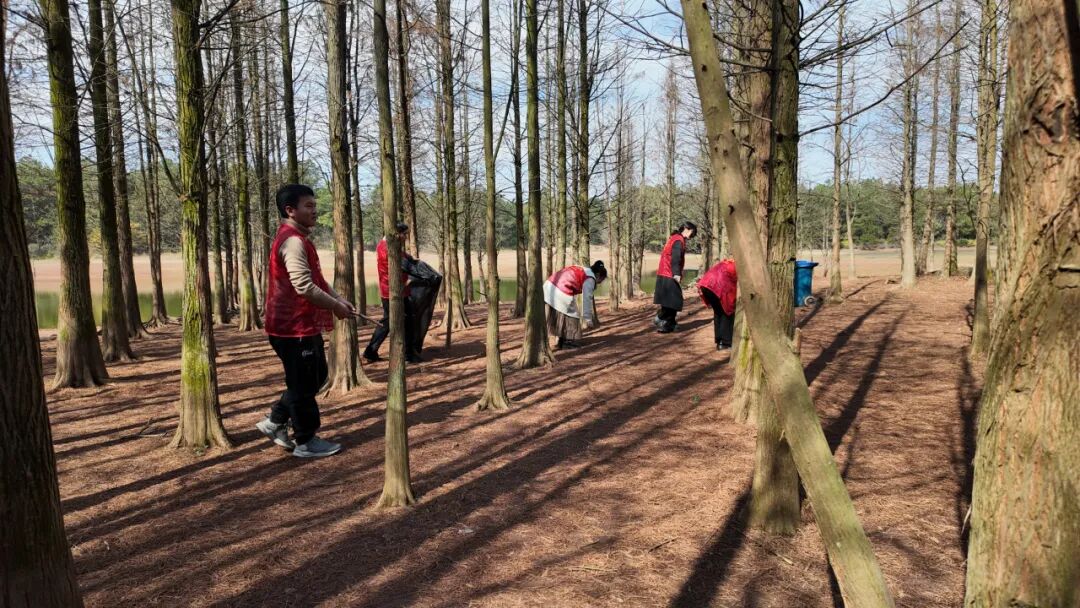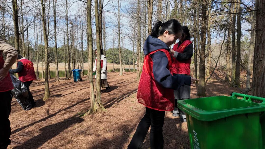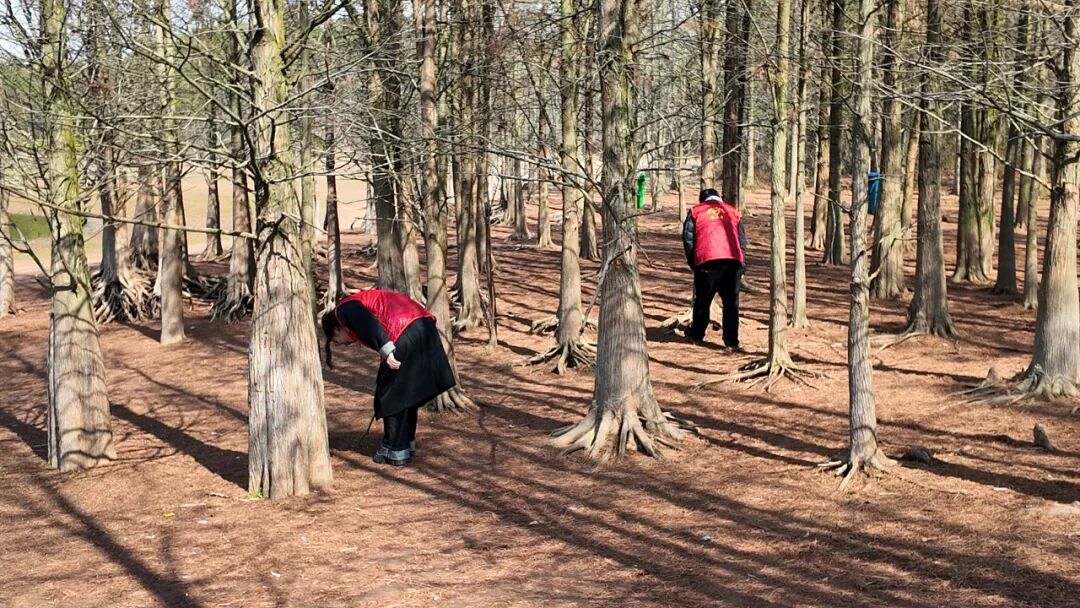 3月2日,青检先锋队干警们驱车来到圭峰牛栏坞水杉林。他们身着志愿者服装,撸起袖子,俯下身子,用自己的双手捡拾散落在林间的垃圾。大家干劲十足,不放过任何一个角落,干警们忙碌的身影成为林中一道亮丽风景线。