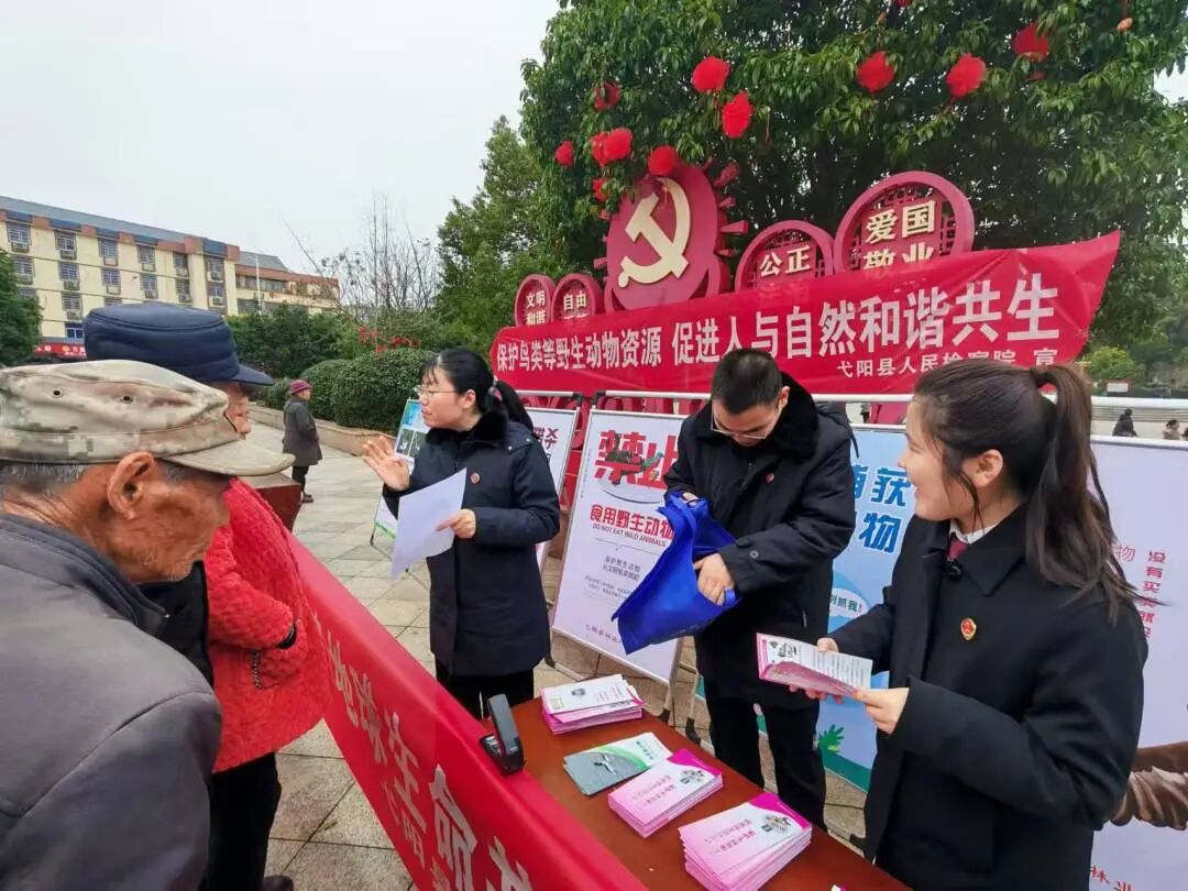 3月4日上午,青检先锋队干警们在城北广场设立咨询台,拉挂横幅,向过往群众发放法律宣传资料。围绕“清网护鸟”这一主题,干警们结合实际案例,深入浅出地进行讲解,耐心解答群众的疑问。进一步增强了群众爱鸟护鸟意识,为构建美丽和谐弋阳奠定坚实基础。