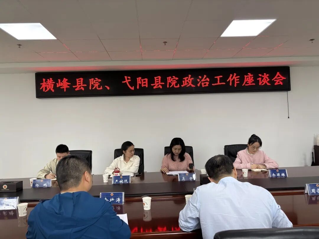 为深入贯彻落实习近平法治思想、习近平文化思想,高质效做好检察政治工作,着力锻造高素质专业化检察队伍。4月24日,横峰县检察院党组成员、政治部主任吴静及政治部、办公室干警一行5人,与弋阳县检察院党组成员、政治部主任丁亚及政治部干警,在弋阳县检察院五楼大会议室开展政治工作交流座谈会。