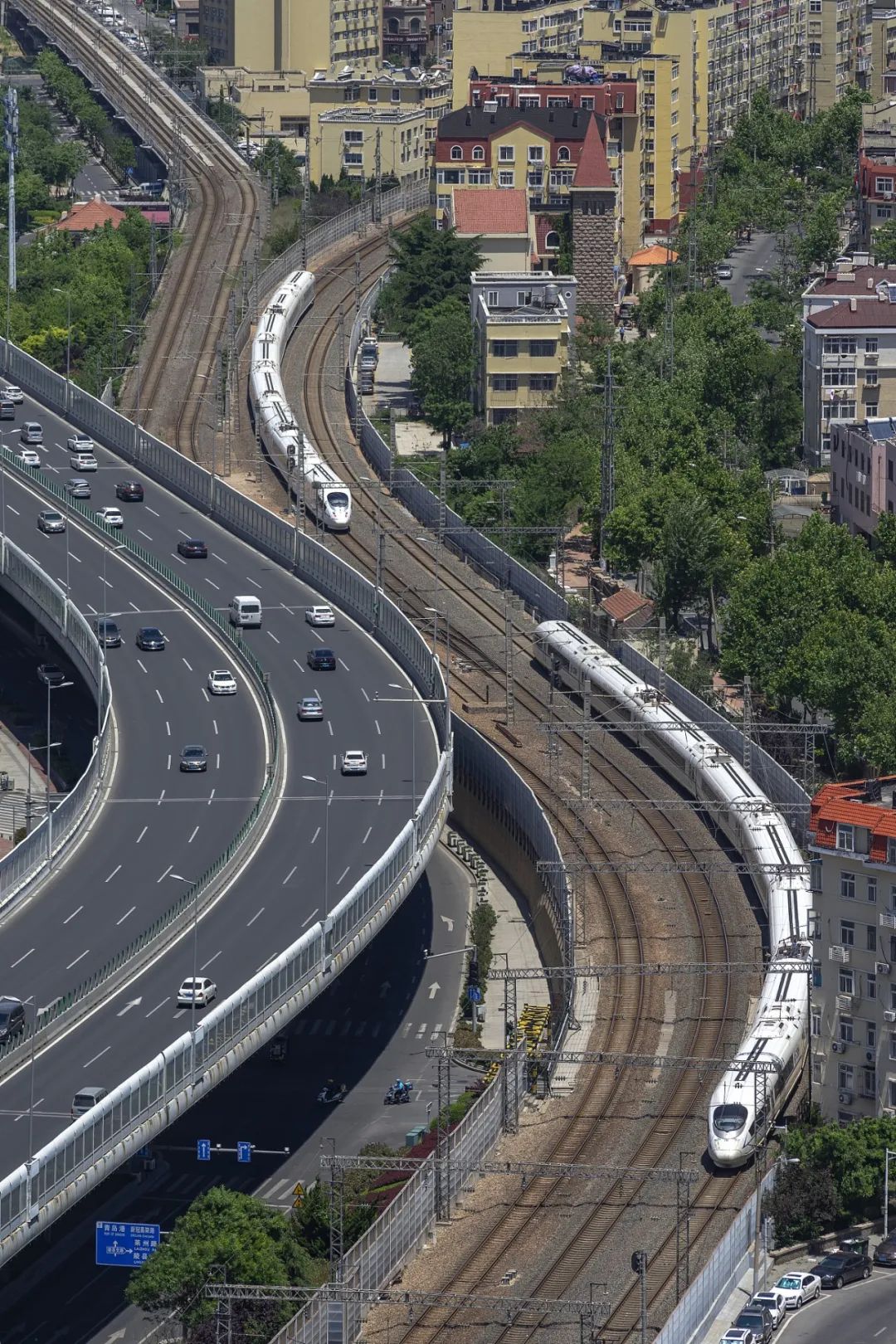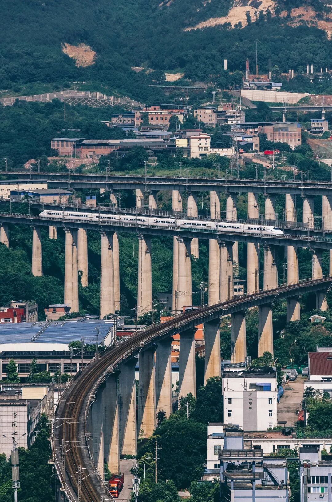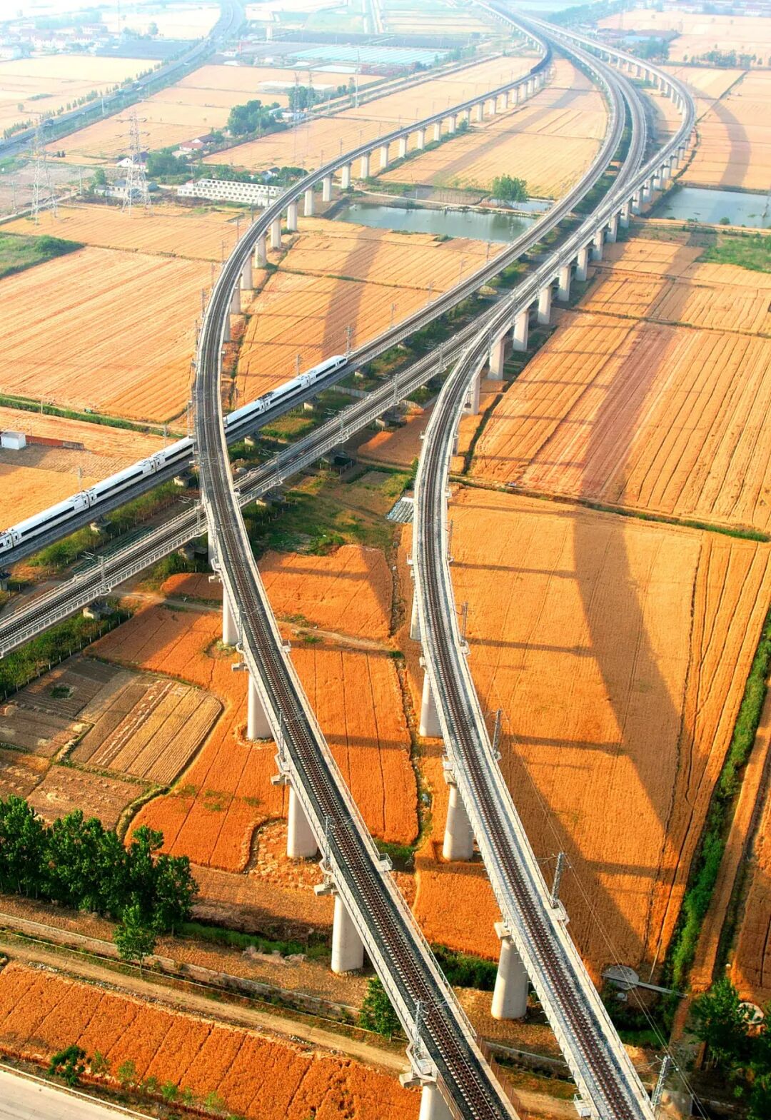 人口密集,用地珍贵 这条通道大量采用桥梁架设 可谓是“跑在桥上的高铁”