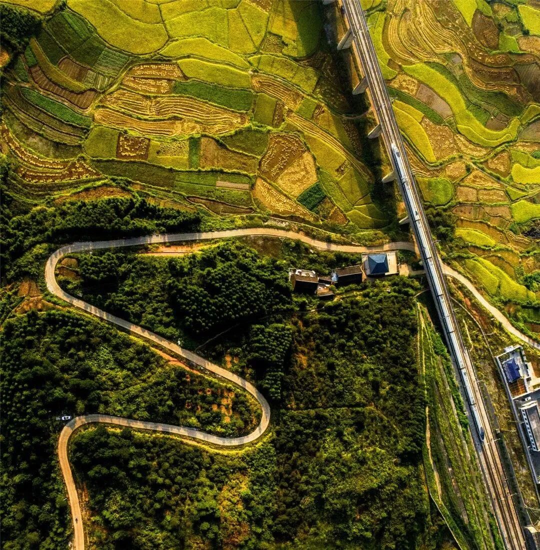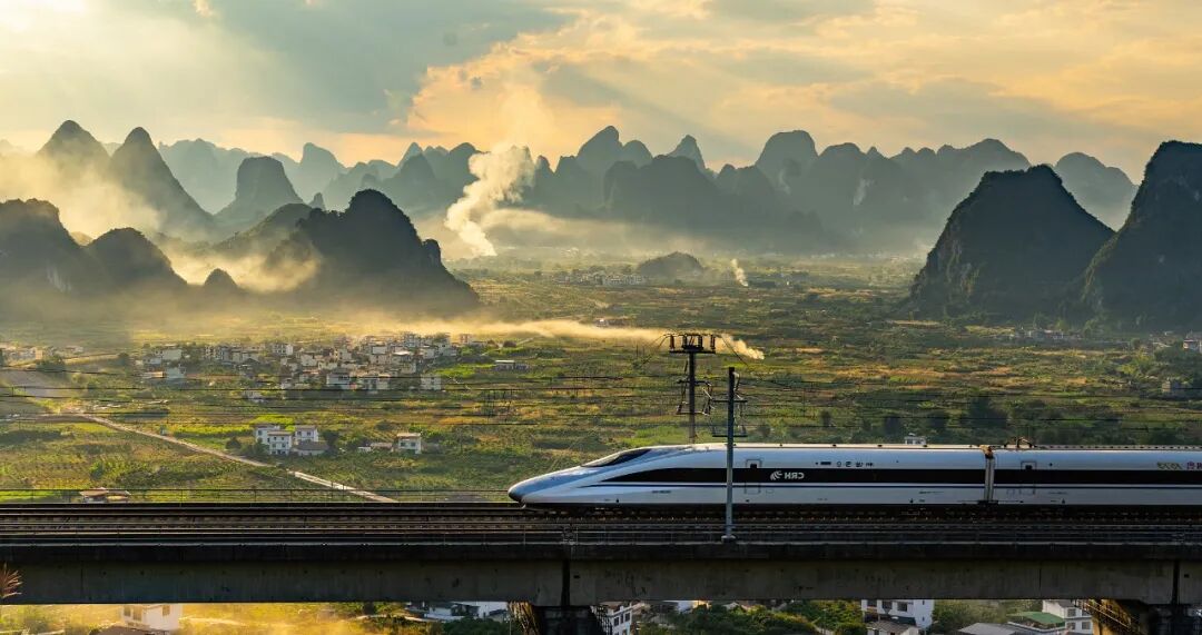 它穿越了许多山地 其中贵广高铁 一半以上的线路在“地下” 当列车驶出隧道 秀丽的喀斯特丘陵 点缀其中的小平原和小村落 宛如一幅绝美的山水画 给人以岁月静好的愉悦