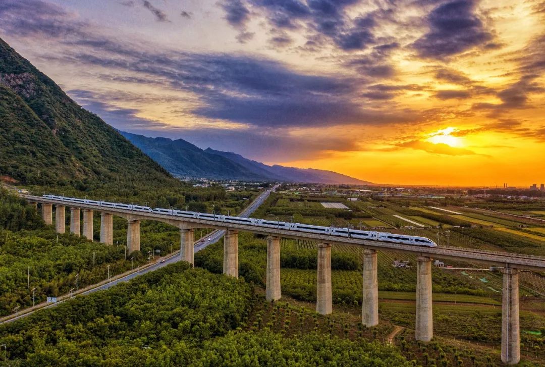 西成高铁连接西安和成都 它横穿秦岭进入四川盆地 早上还在吃肉夹馍 晚上就能品尝钵钵鸡和担担面 蜀道已经不再难