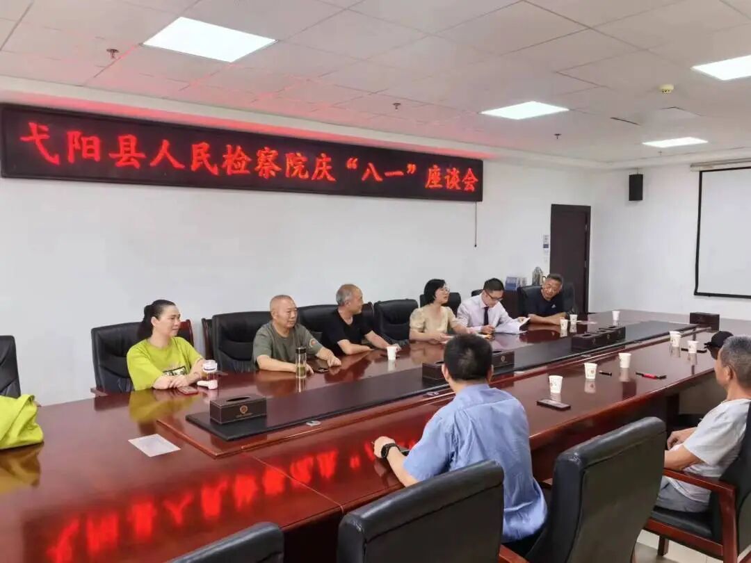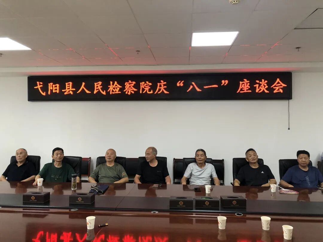 为深入贯彻习近平总书记关于双拥工作重要论述,大力弘扬新时代拥军优属优良传统,营造尊军崇军、爱军拥军浓厚氛围,7月31日上午,在中国人民解放军建军97周年来临之际,弋阳县人民检察院召开庆祝“八一建军节”座谈会,在职和退休的检察退役军人齐聚一堂。院党组书记、检察长蔡明筱,院党组成员、政治部主任丁亚出席会议。